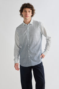 A stylish blue and white gradient print shirt with full sleeves and a spread collar. Made for all occasions—perfect for parties, the office, or casual outings.
