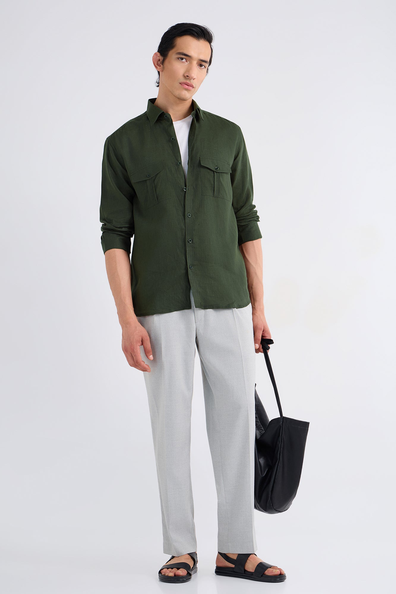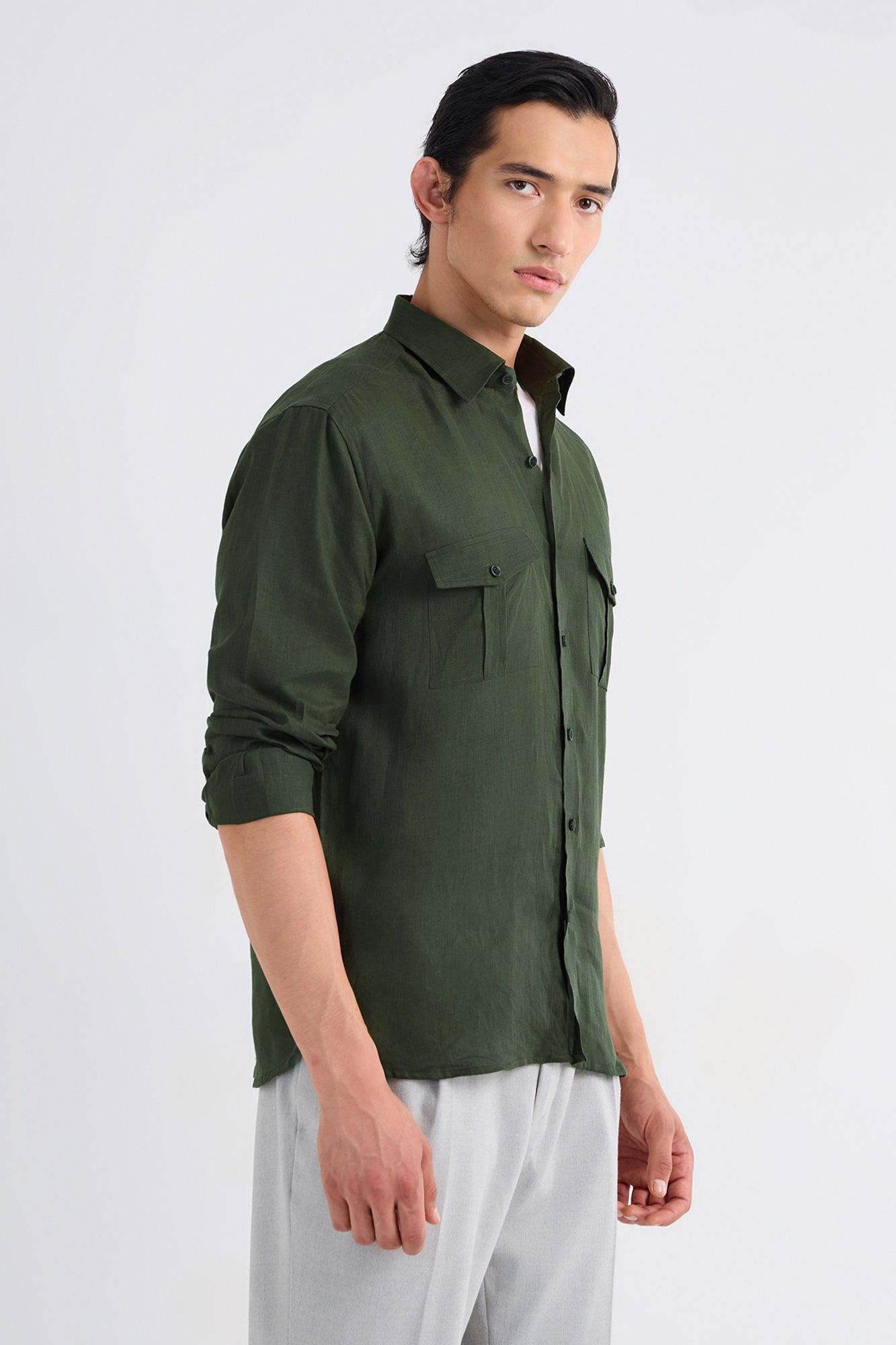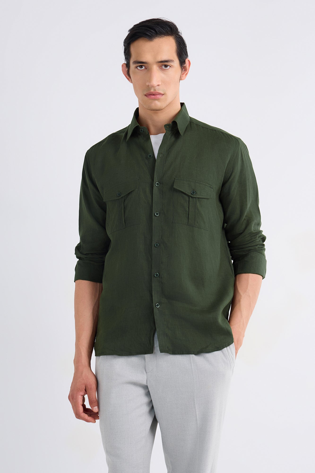 Woven from fine, airy linen, this piece keeps you cool without compromising on style. The dual-pocket design adds a refined utilitarian edge, making it versatile enough for both relaxed and polished looks.