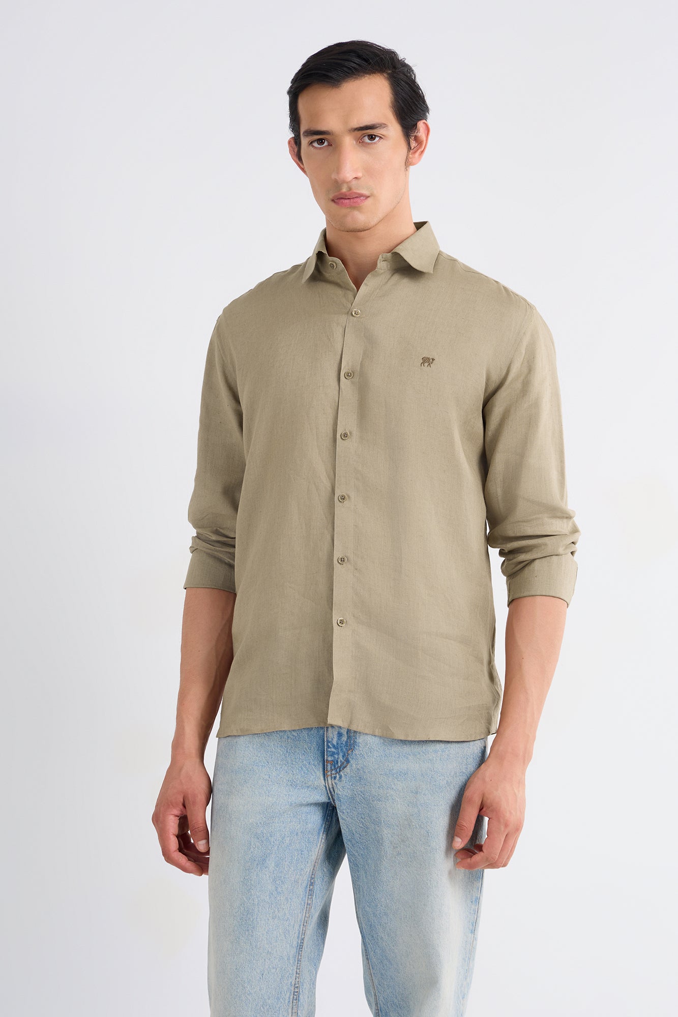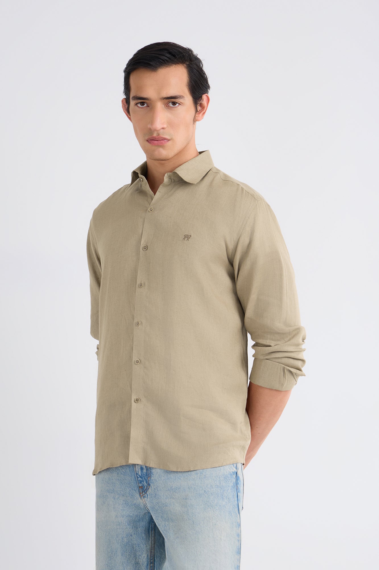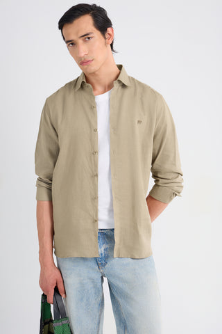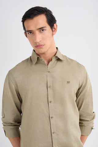 Earthen Khaki Pure Linen Shirt - 38
