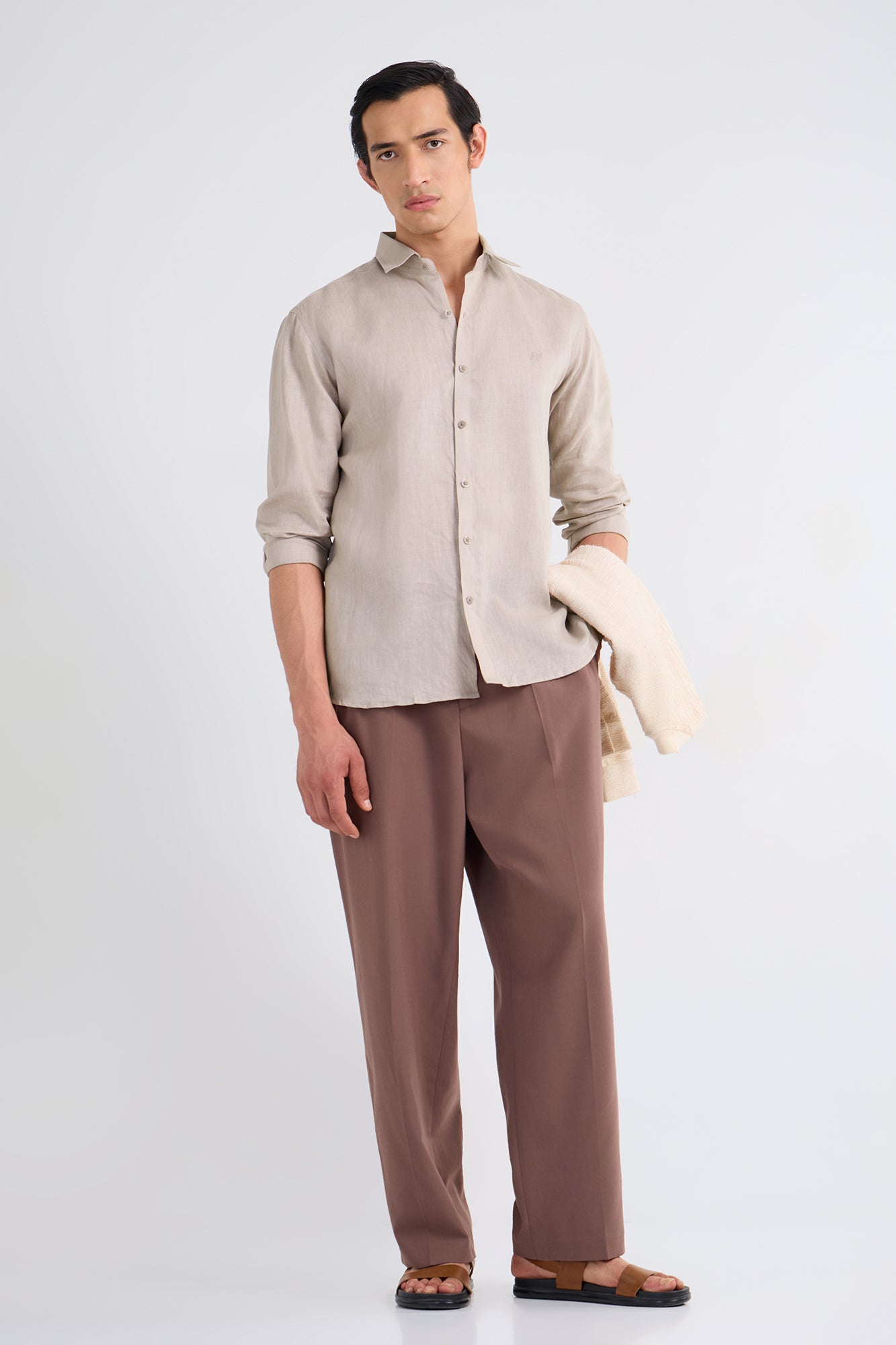 A clean and sophisticated cream linen shirt designed for all-day comfort. Its pure linen texture and timeless full-sleeve silhouette make it a versatile essential for effortless style.