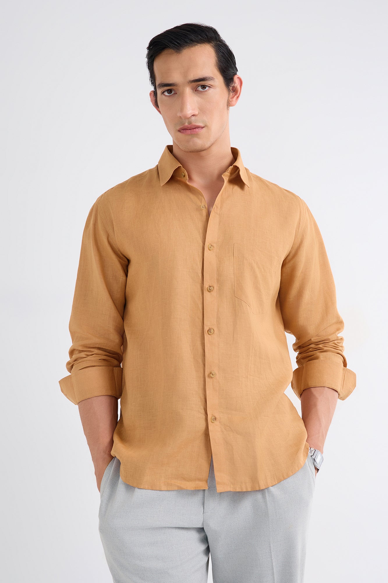 Upgrade your wardrobe with this premium Full Sleeve Linen Shirt, crafted to deliver the perfect balance of style, comfort, and sophistication. Made from high-quality 100% linen, this shirt is naturally breathable, lightweight, and ideal for all seasons.