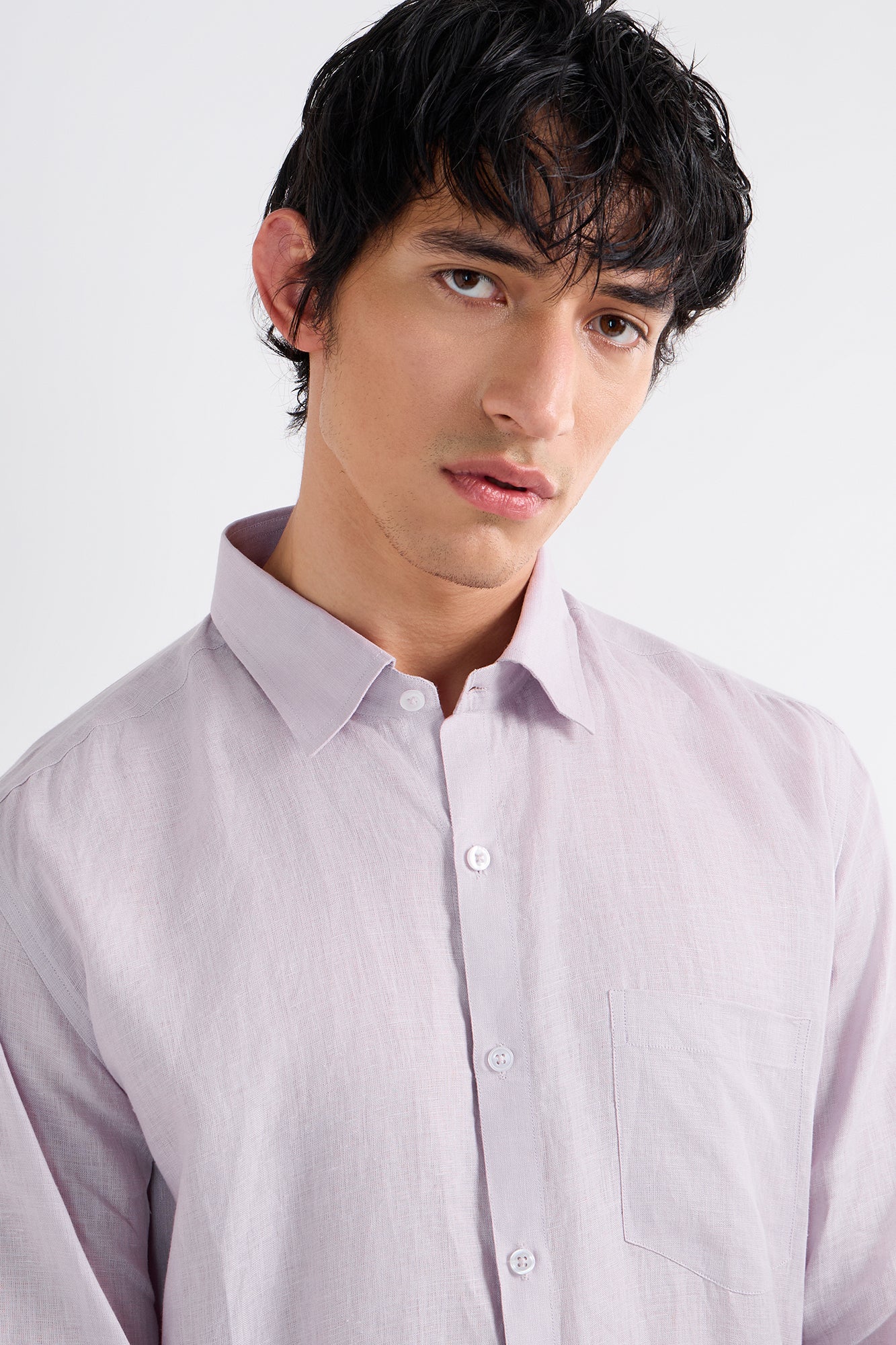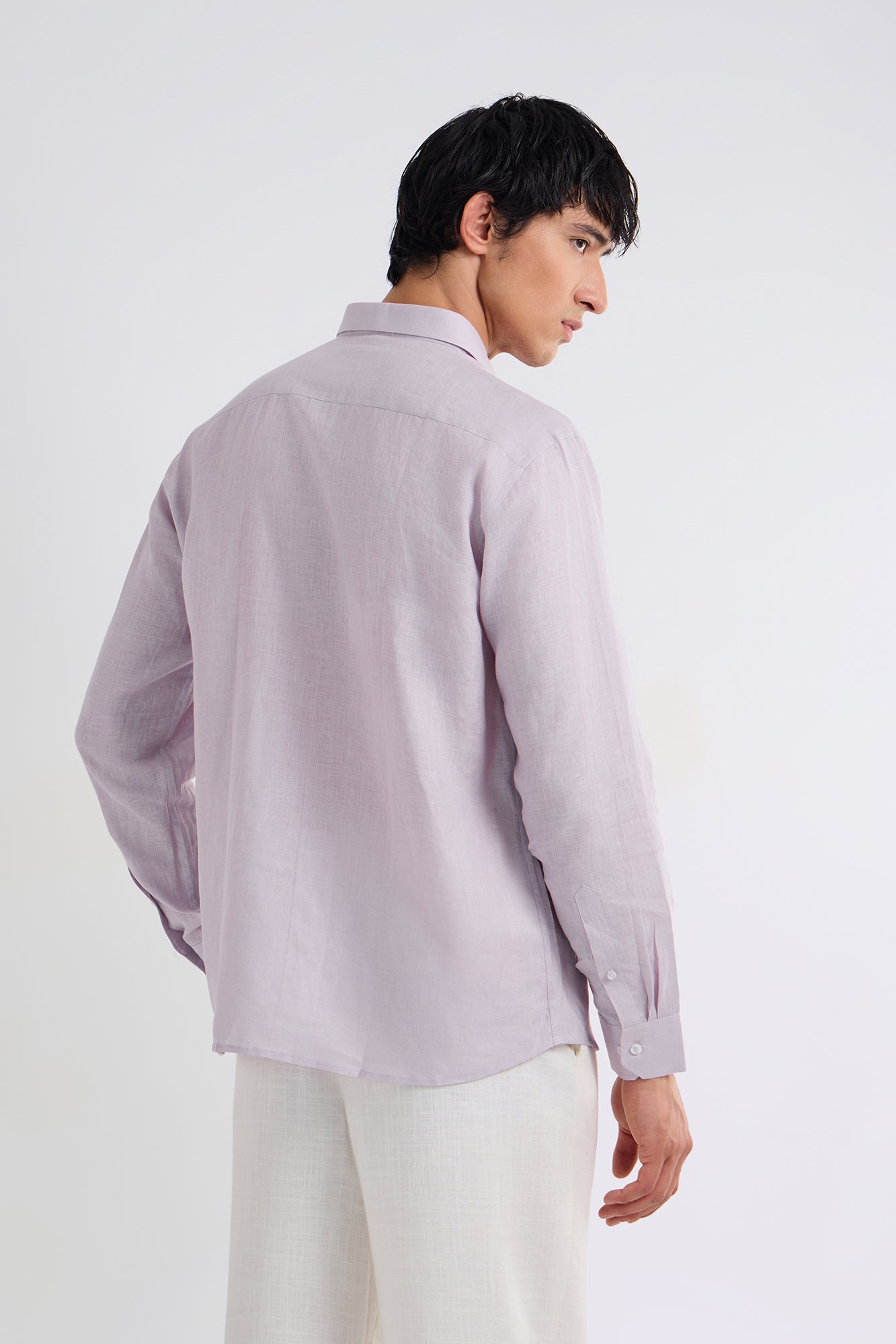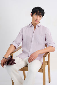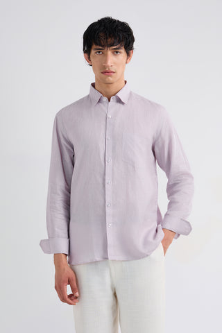 Fresh pastel lavender brings a calm, modern touch to this classic 100% linen silhouette.
