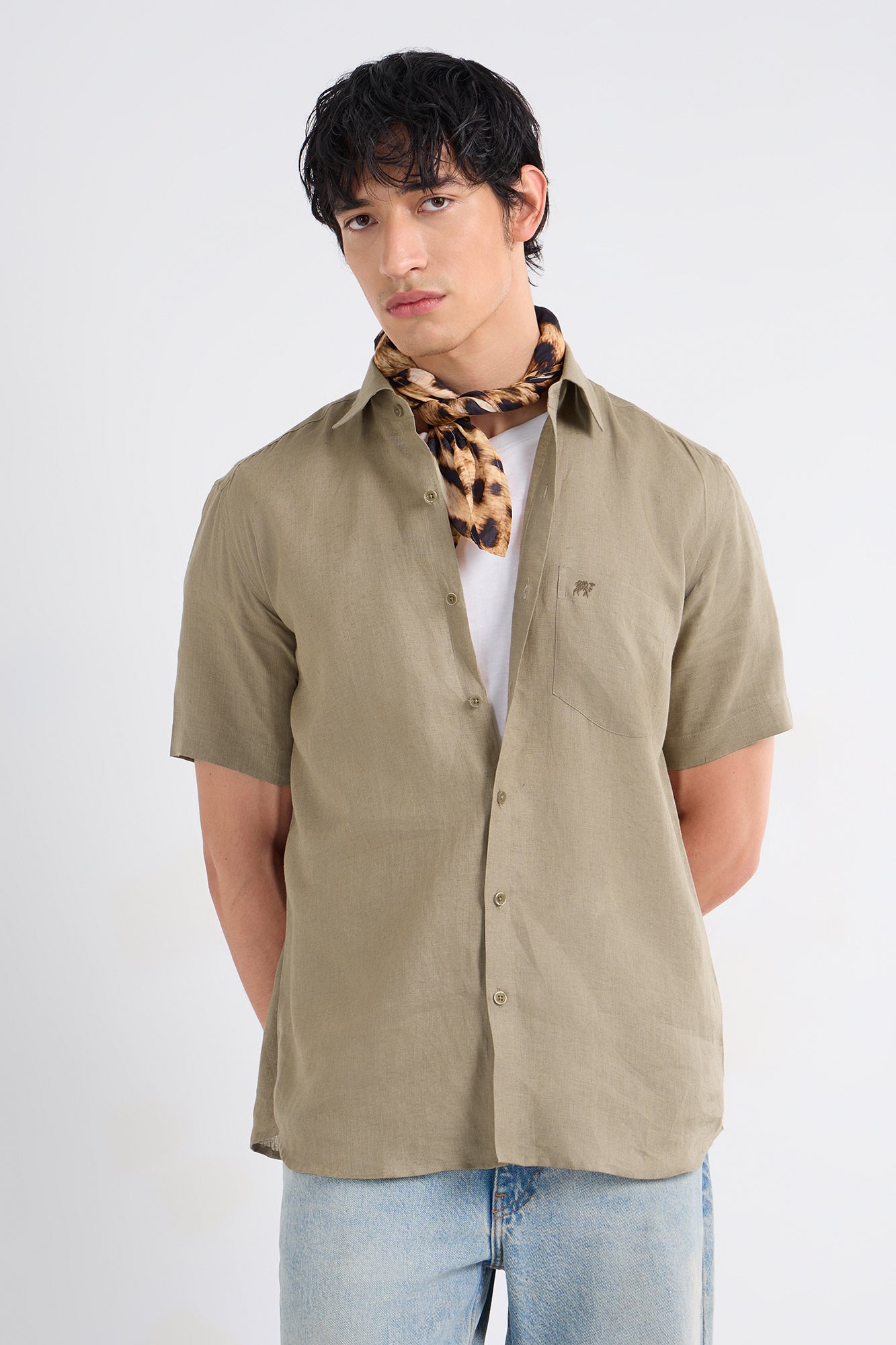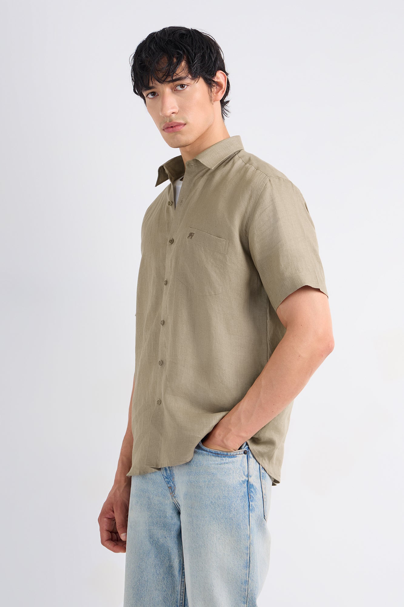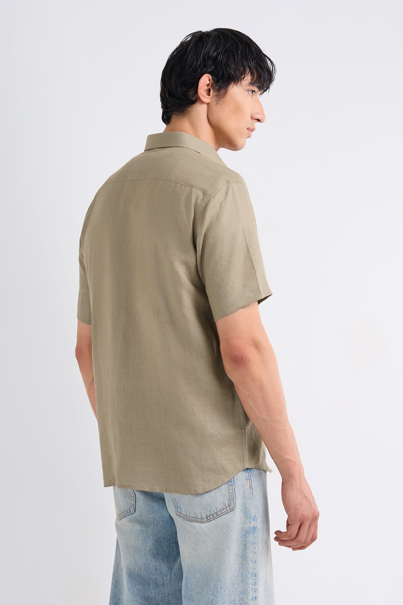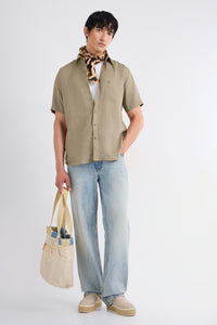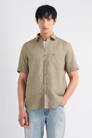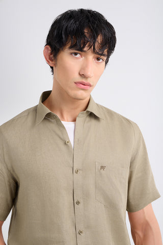 Soft, breathable linen meets an easy half-sleeve silhouette in this warm khaki shade inspired by nature. Minimal, versatile, and built for relaxed routines.
