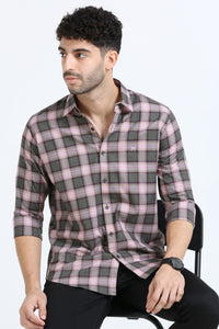 This shirt features a soft olive blush check pattern for a subtle yet stylish look. Made from comfortable, breathable fabric, it's great for all-day wear. Perfect for casual outings or a relaxed workday.